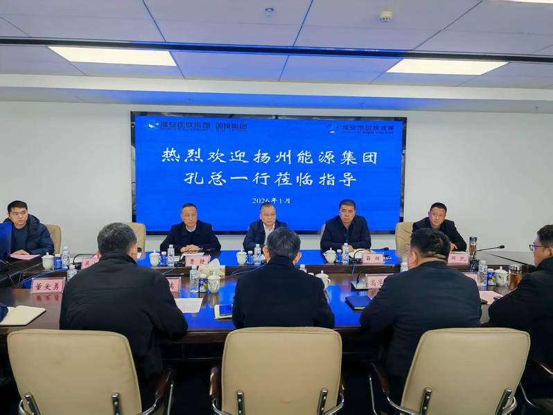 1月14日,扬州城控集团副总经理、能源集团董事长孔德存带队赴淮安市国投能源公司开展专题调研,供热公司相关负责人参加调研。